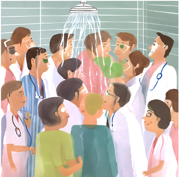 Afin d’améliorer la prise en charge de la douche préopératoire, nous avons réalisé une recherche interventionnelle en santé publique. Ce projet, qui a obtenu un financement du PHRIP en 2019, nous a amené à effectuer un recueil de données par entretiens auprès des soignants et patients de trois services de chirurgie programmée du CHU de Rouen.